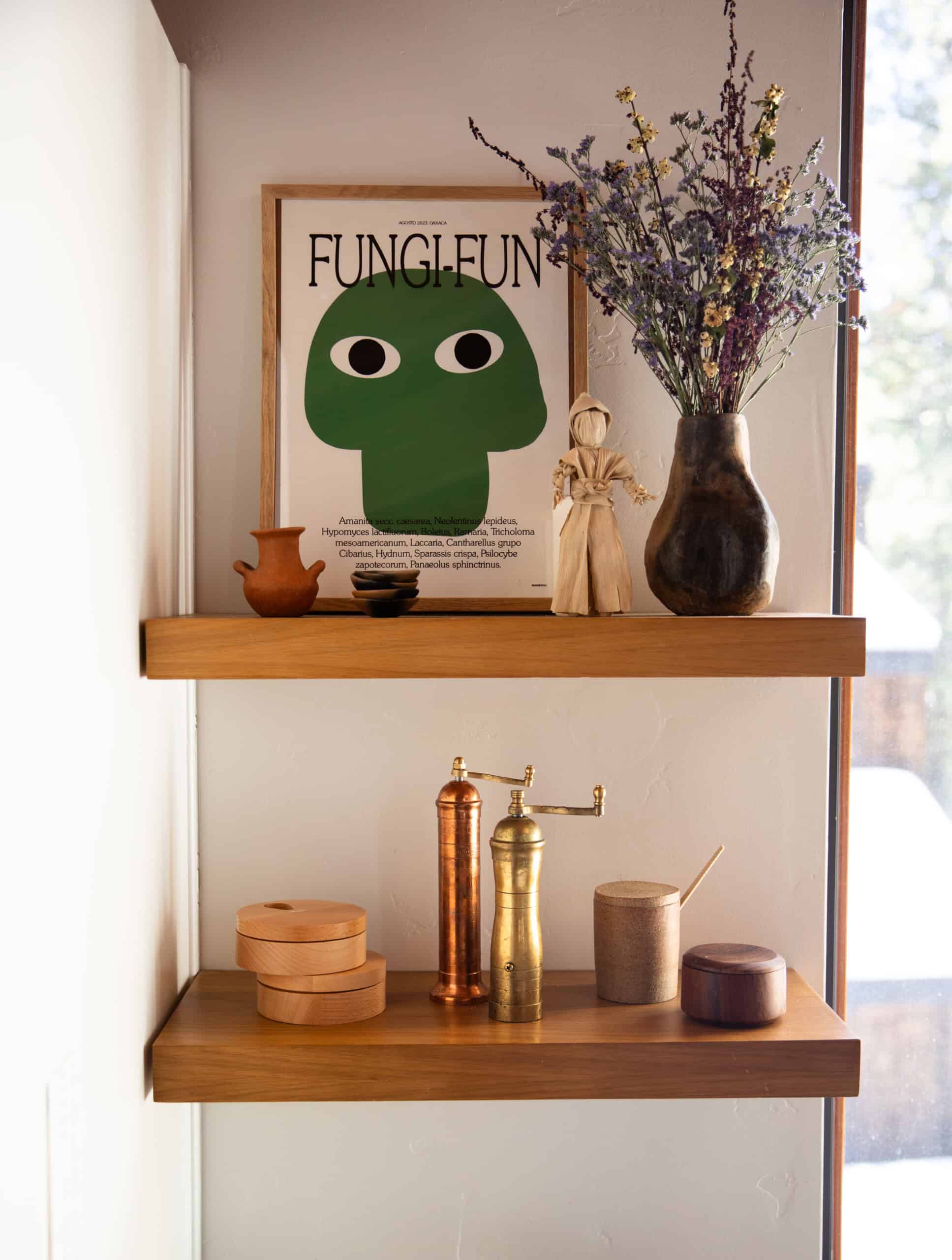 "Visual clutter has a direct impact on the clutter in my brain, so I function best when our house is tidy (which is a near constant battle with a 4 1/2 year old). And while our aesthetic could be described as minimal, it’s important for our house to feel warm and to fit its surroundings. We’re slowly redecorating where and when we see fit; at the moment we have a lot of hearty wood elements, rich earth tones, varying textiles for texture and depth, and collectibles from our travels."