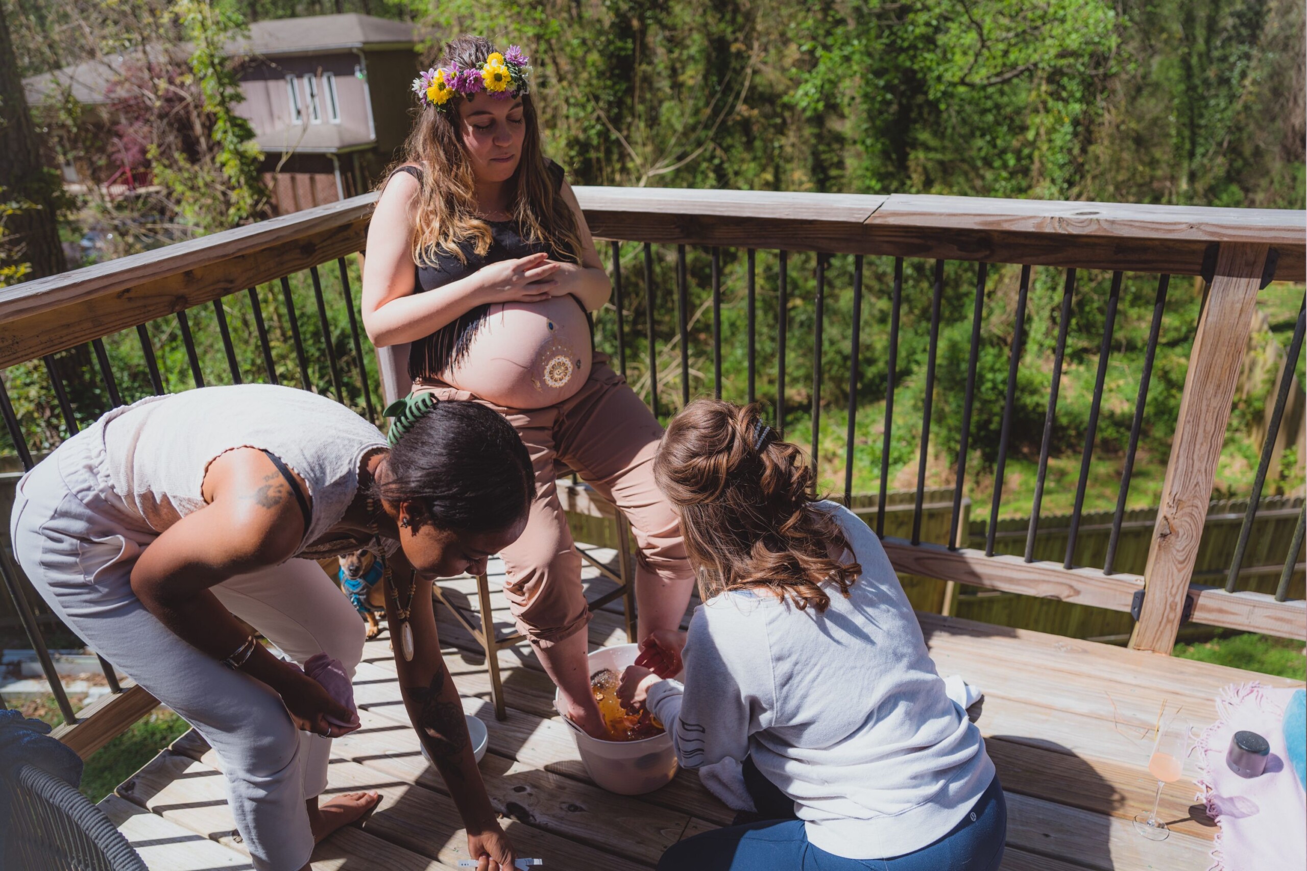 Be prepared to cry during the ceremony! An emotional release session is usually incorporated into this ceremony so that the mother-to-be can express her deepest fears to those closest to her, and a ritual is done to release and let go. You can have her release her fears by writing them down on a piece of paper, sharing them with the group if she feels called, and then burning the paper and dropping it into a bowl of water. As we help her overcome her fears and prepare for her journey to the stars to retrieve her child’s soul and bring them safely home, we build her up and help her work through those fears. The mother can also experience group activities like belly bump painting, creating birth affirmation flags, making flower crowns, drawing a sacred foot bath, or receiving hand or foot massages. Whatever it takes to make her feel empowered.
