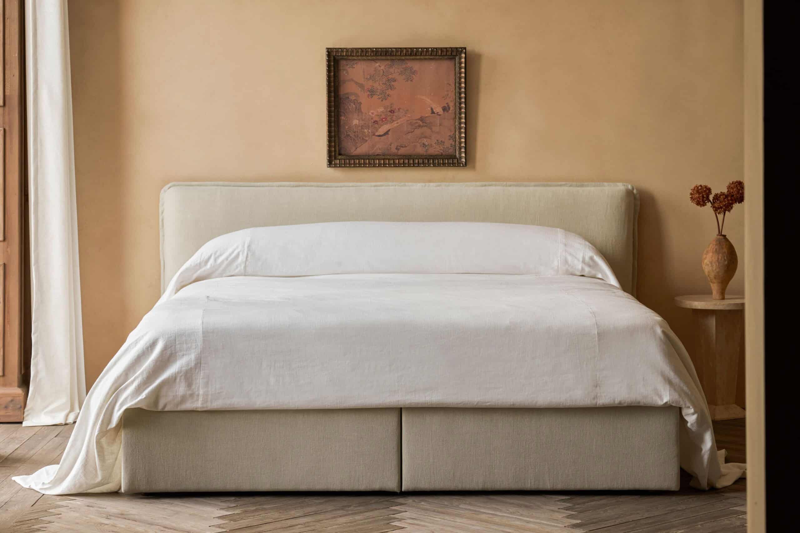 The newest Devyn, Esmé, and Neva storage beds launched earlier this month and are available in queen and king sizes in seven delicious fabric choices: Washed Cotton Velvet, Thread-Dyed Cotton Linen, Recycled Faux Fur, Recycled Poly Linen, Recycled Poly Weave, Medium Weight Linen, and Light Weight Linen. They also come in up to 30 different color options—from classic neutrals to bright sunflower yellow, deep emerald green, and everything in between.