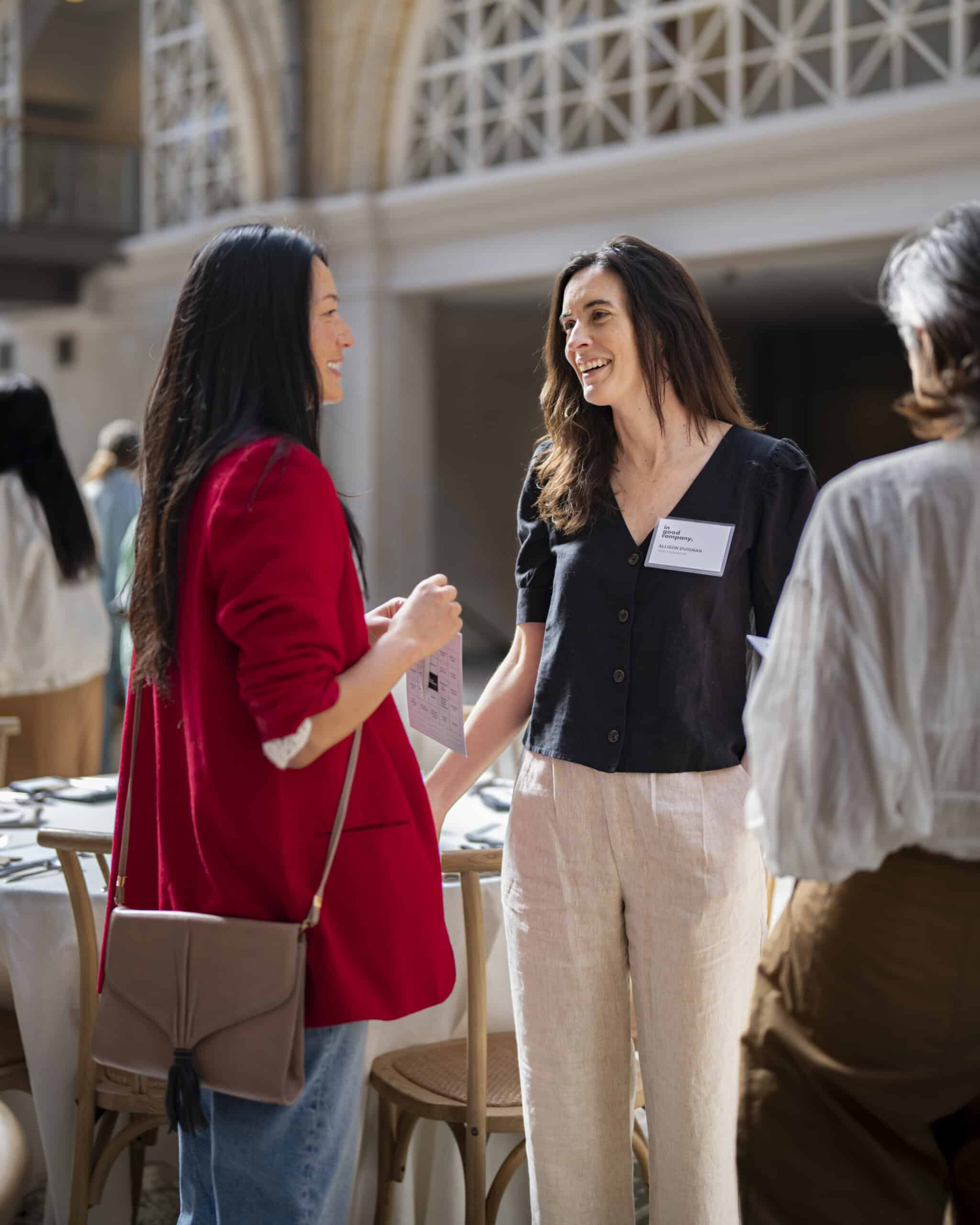 - Joyce Hu and Allison Duignan catching up.