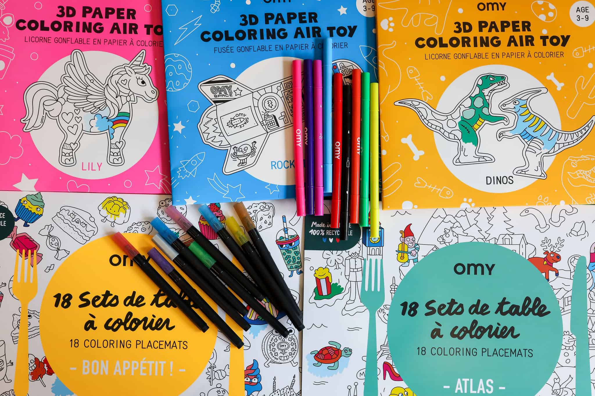 - Inflatable art, placemats, and more OMY goodies.