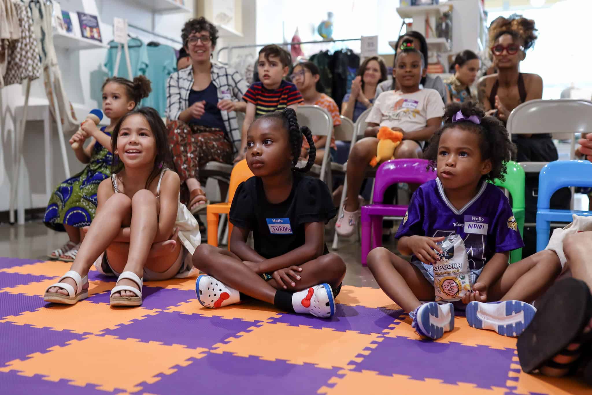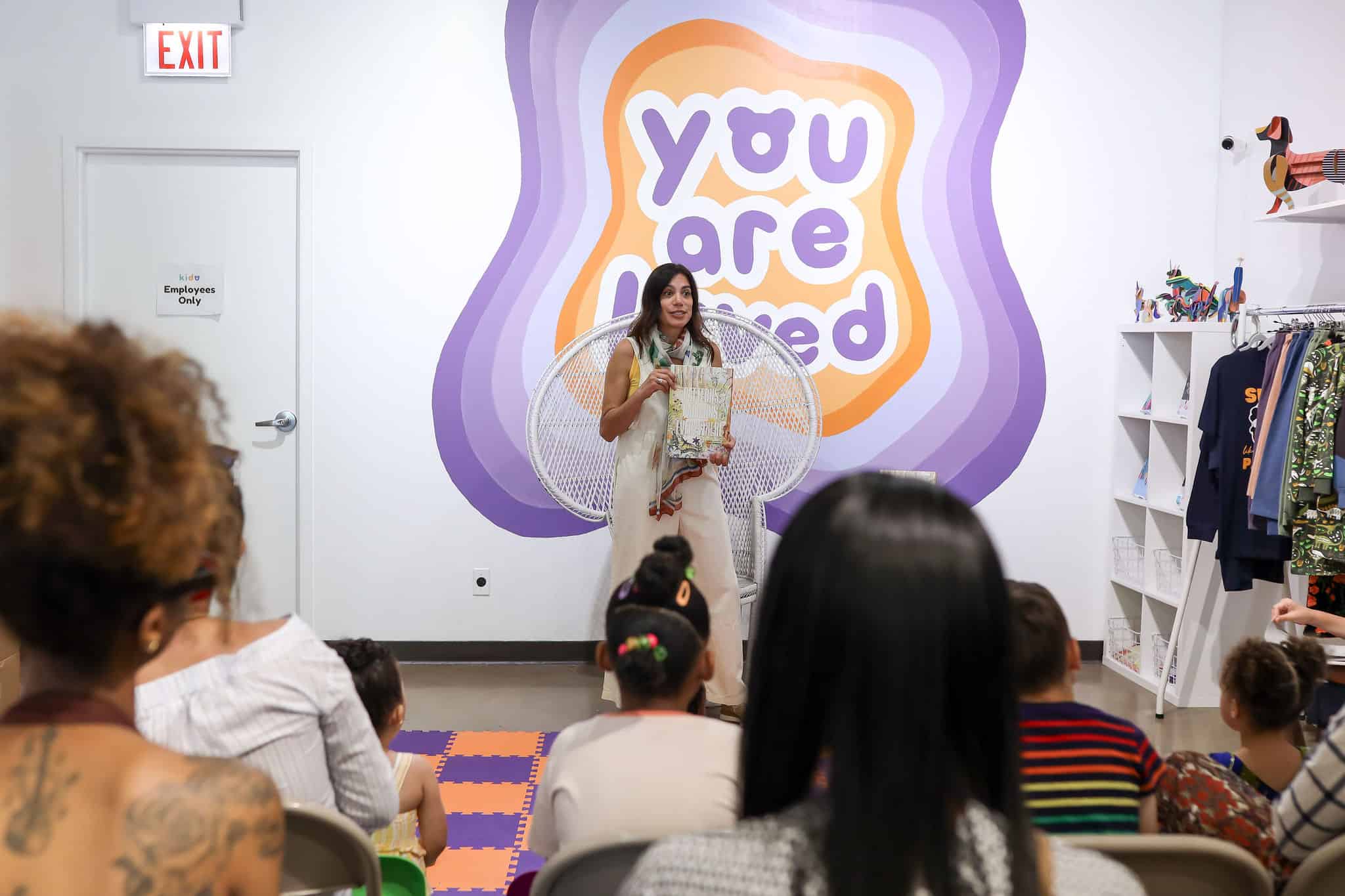 Our first-ever event in Chicago was filled to the brim with color and fun. Thanks to our host—Keewa Nurullah and her vibrant shop, Kido—and our theme: Patterns, Patterns Everywhere, inspired by visiting author-illustrator Kellie Menendez and her debut book of the same name. Kellie was joined by another debut author, Katherine “Kat” Trejo, who also read from and signed copies of her touching book, Yefferson, Actually.